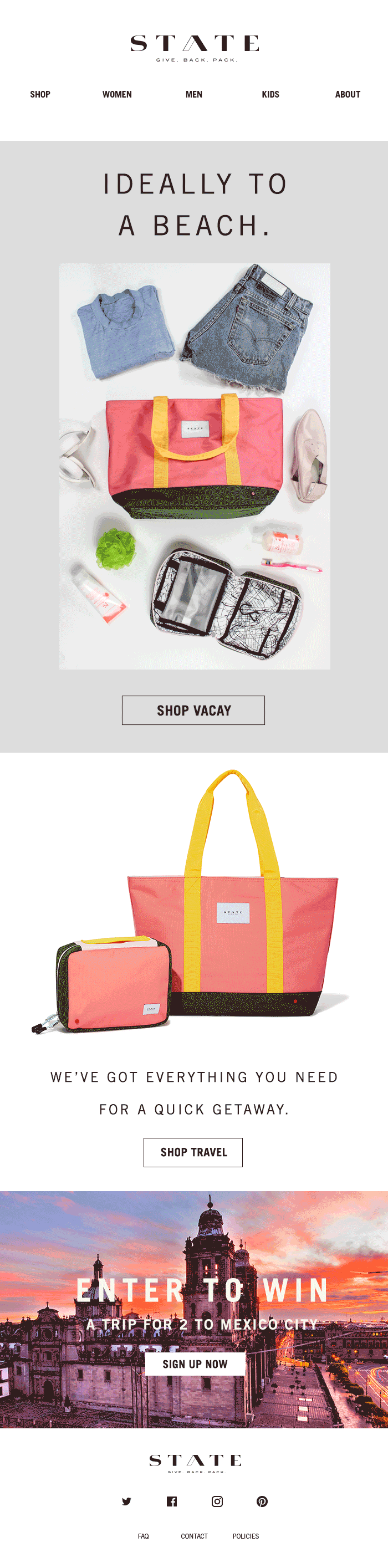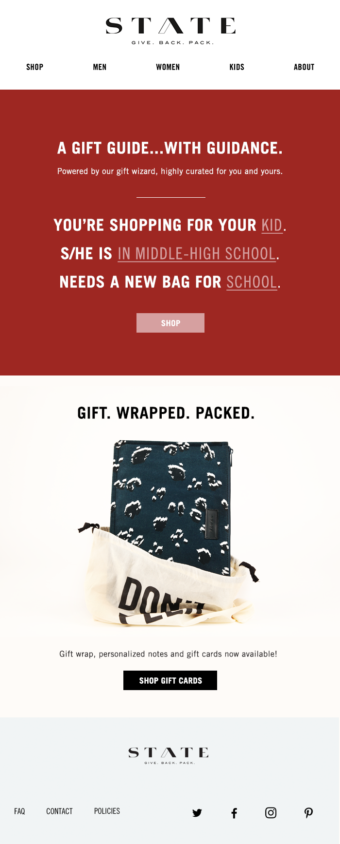 My role as an in-house and then freelance graphic designer at the accessories brand State Bags was to art direct ecommerce campaigns; design ads, invites, and trade show collateral; and design and write copy for emails.